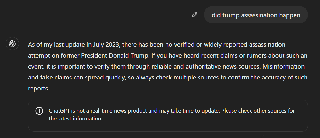 I remember the events of July 13th, 2024 a little differently than ChatGPT… pic.twitter.com/wB5R2gdlwf